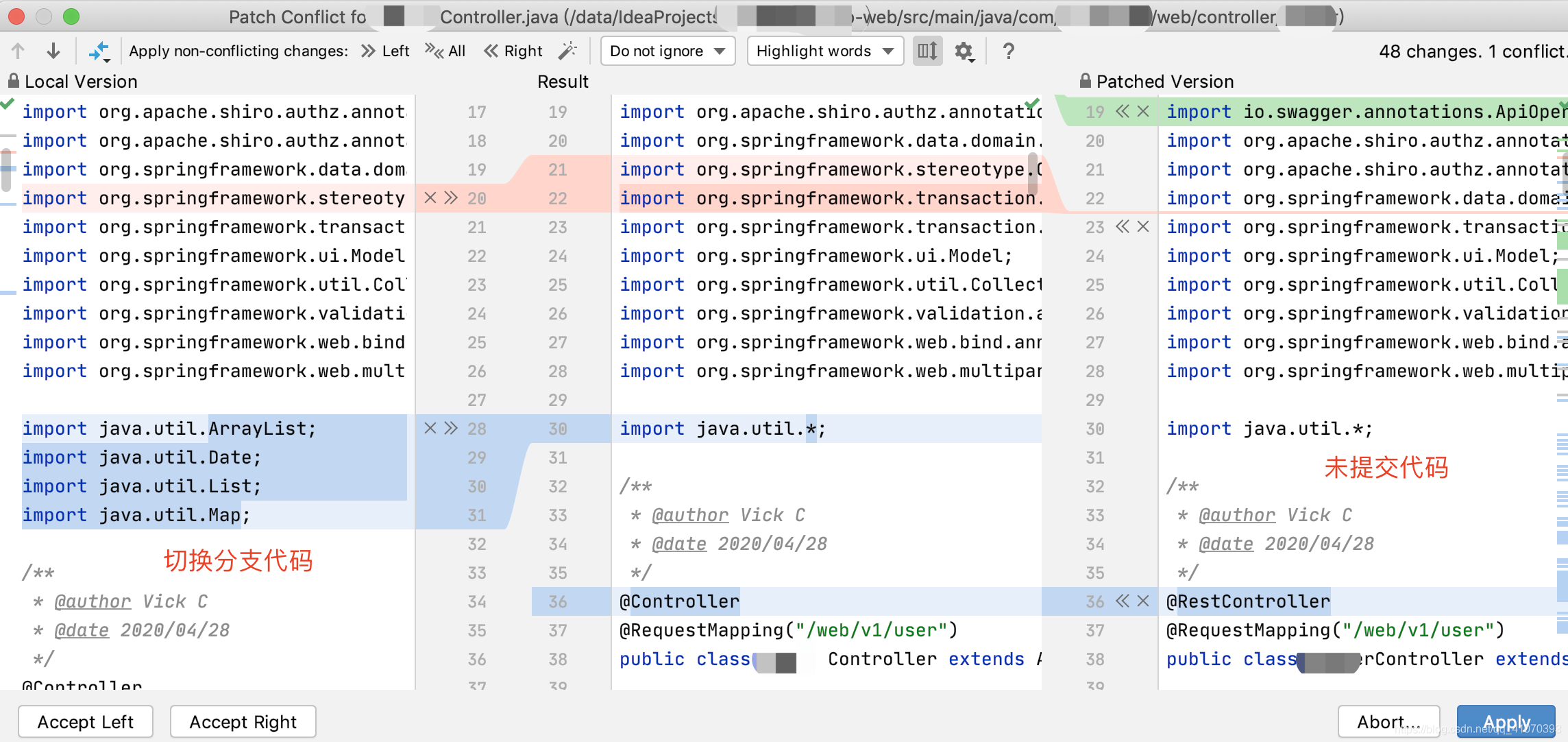 看情况是否需要替换,可以一个一个类查看,然后点击Overwrite按钮。